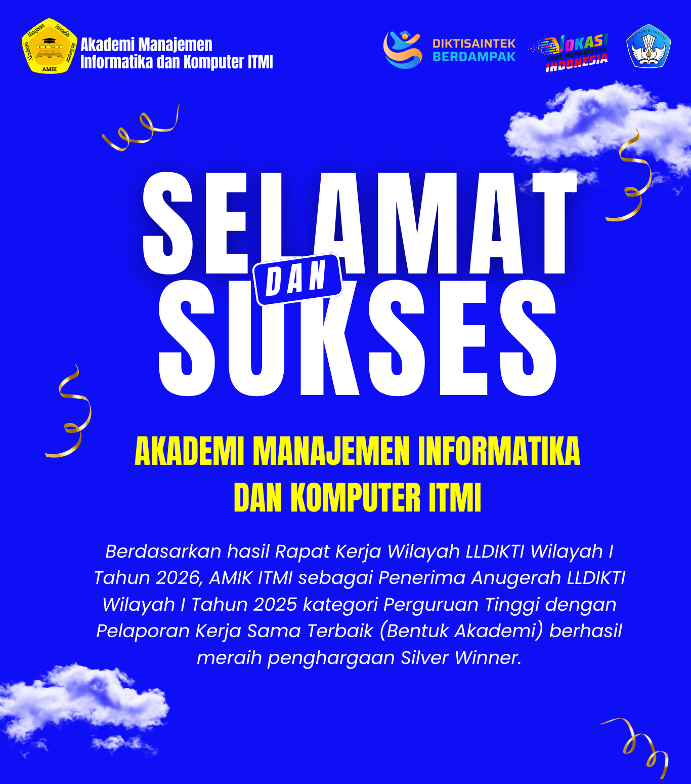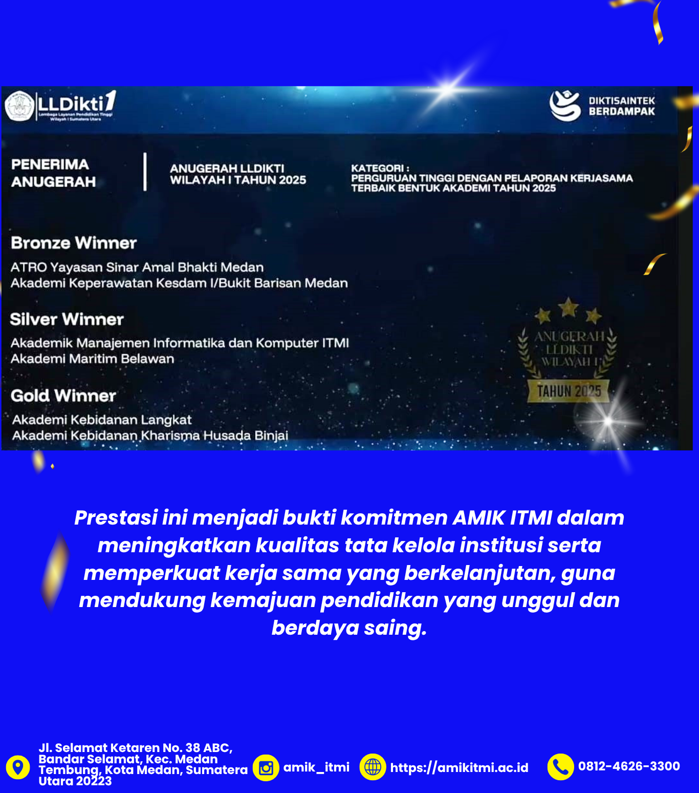 SELAMAT DAN SUKSES AMIK ITMI ATAS PEROLEHAN SILVER WINNER PADA ANUGRAH LLDIKTI WILAYAH I TAHUN 2025